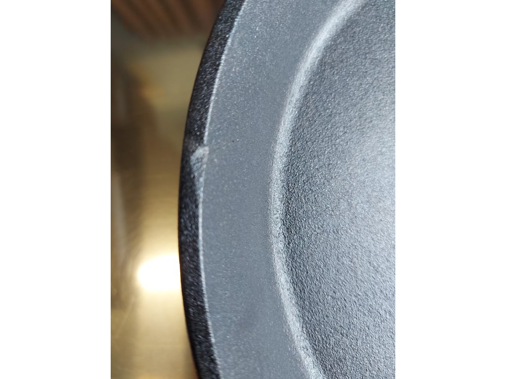 Jedná se o tuto pánev, zcela nová, nepoužitá. Z výroby na okraji malý nedolitek . Na funkčnost nemá absolutně žádný vliv, spíše se jedná o menší optickou záležitost, časem se používáním zacelí. Plná záruka.